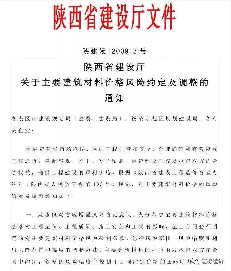 一、從2021年春節后受國際國內市場多因素影響,鋼材、銅等建筑材料價格波動較大,對建筑工程造成影響較大,2021年5月19日陜西省住房和城鄉建設廳發布:陜建發【2021】94號文件關于建筑材料價格風險管控指導意見的通知。 1、發承包雙方應增強主要材料價格風險防范意識,充分考慮材料價格波動對工程造價、工程質量、施工安全的影響,施工合同必須明確約定主要建筑材料價格風險控制條款,不得采用無...