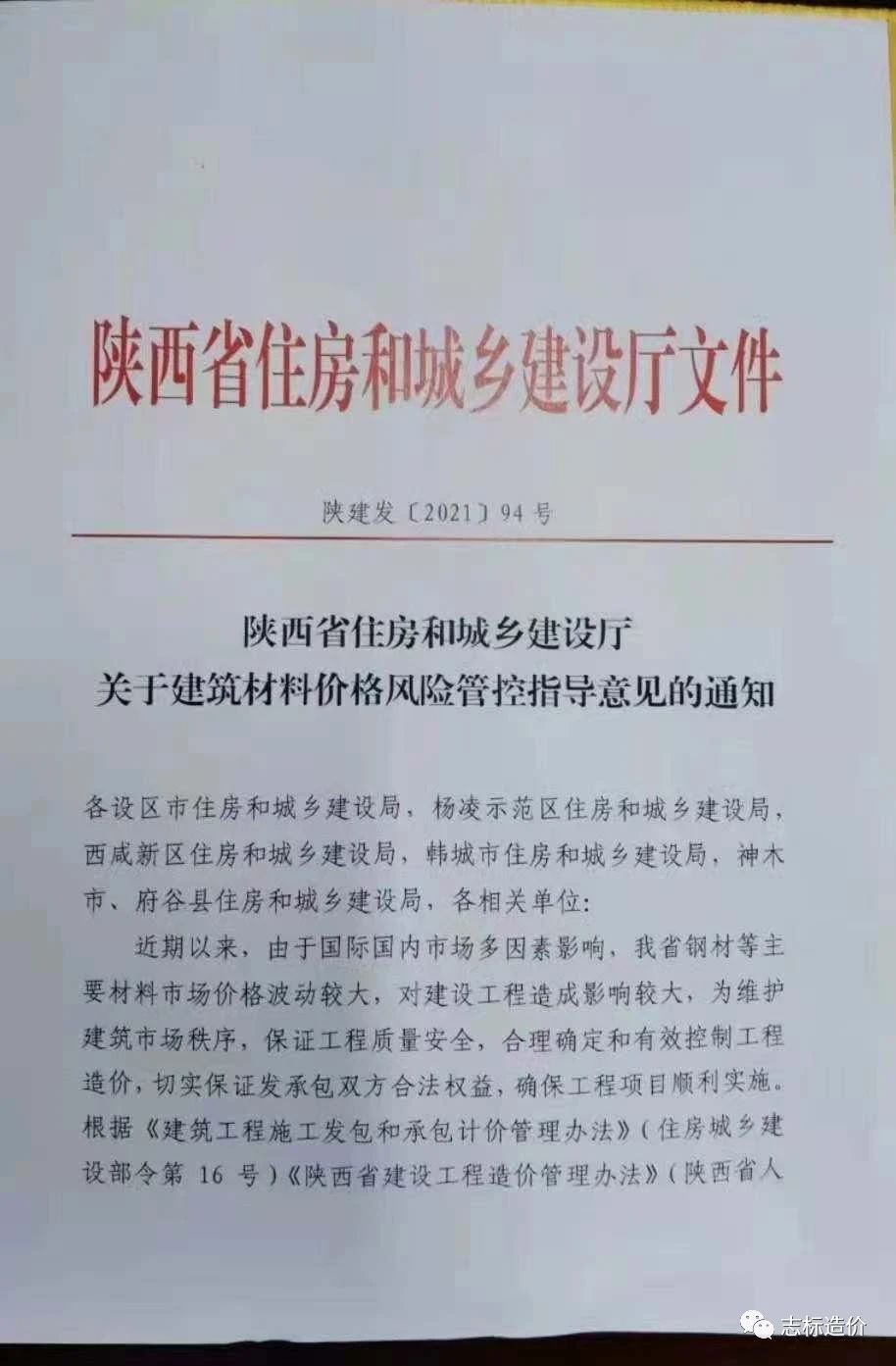 一、從2021年春節后受國際國內市場多因素影響,鋼材、銅等建筑材料價格波動較大,對建筑工程造成影響較大,2021年5月19日陜西省住房和城鄉建設廳發布:陜建發【2021】94號文件關于建筑材料價格風險管控指導意見的通知。